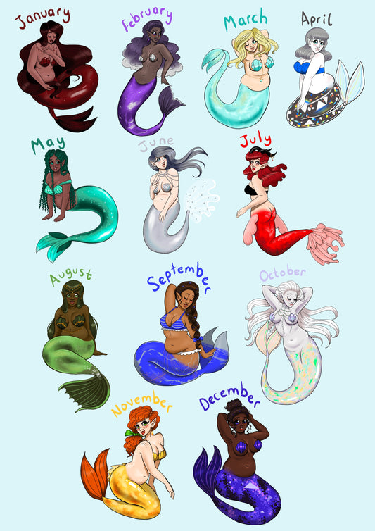 Birthstone Mermaids Vinyl Stickers